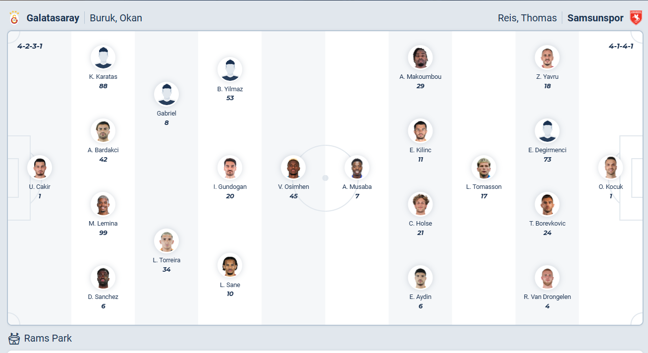 Galatasaray vẫn đang đứng đầu bảng nhưng chỉ còn hơn đội đứng thứ 2 duy nhất 1 điểm sau chuỗi trận không tốt thời gian qua, họ chỉ thắng 2/5 vòng đấu gần nhất. Sau trận hòa ở vòng đấu trước, các cầu thủ Galatasaray cần ngay lập tức trở lại với mạch thắng nếu còn muốn giữ ngôi đầu bảng của mình. Chính vì vậy khi tiếp Samsunspor trên sân nhà ở vòng 15 thì 3 điểm là điều duy nhất mà họ hướng đến. Trước đối thủ yếu hơn và cũng đang không có phong độ tốt thì nhiều khả năng Galatasaray sẽ có được điều mình cần.