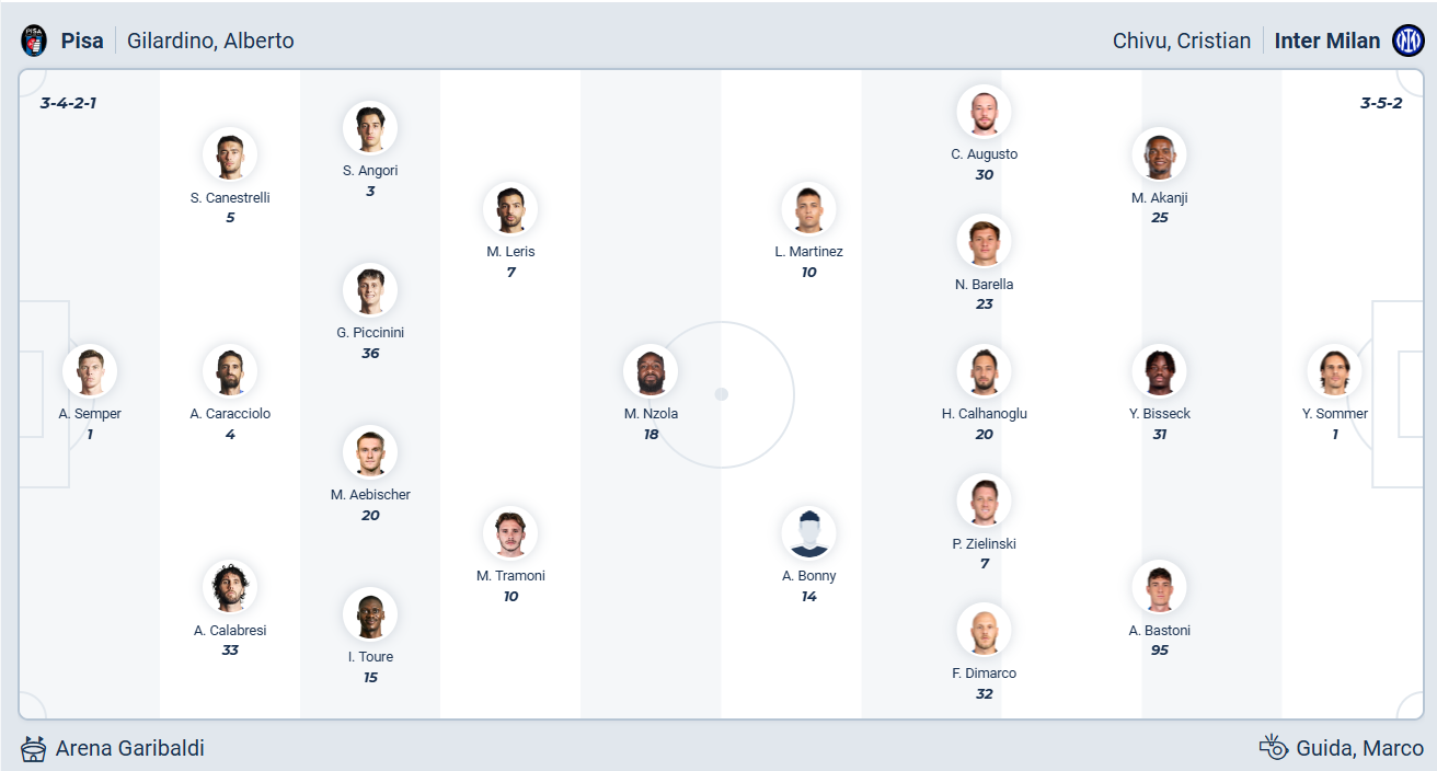 Pisa sẽ tiếp đón Inter trên sân nhà trong trận đấu thuộc vòng 13 Serie A với mục tiêu giành một kết quả tích cực. Nhưng trước đối thủ mạnh hơn nhiều thì xem ra điều đó khó thành hiện thực.
